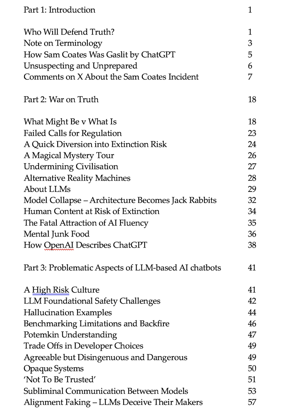 I’ve written a paper AI’s War on Truth which you can download here. It’s in four sections, leads on the unprecedented threat generative AI chatbots pose to truth, democracy and reality, covers how that’s happening, what Civil Society might do about it, some framing and communications stuff, and the spellbinding hold Silicon Valley has over our politicians. There’s a shorter paper of section extracts (but not the conclusions) here. Do let me know what you think by posting a comment or contacting me direct