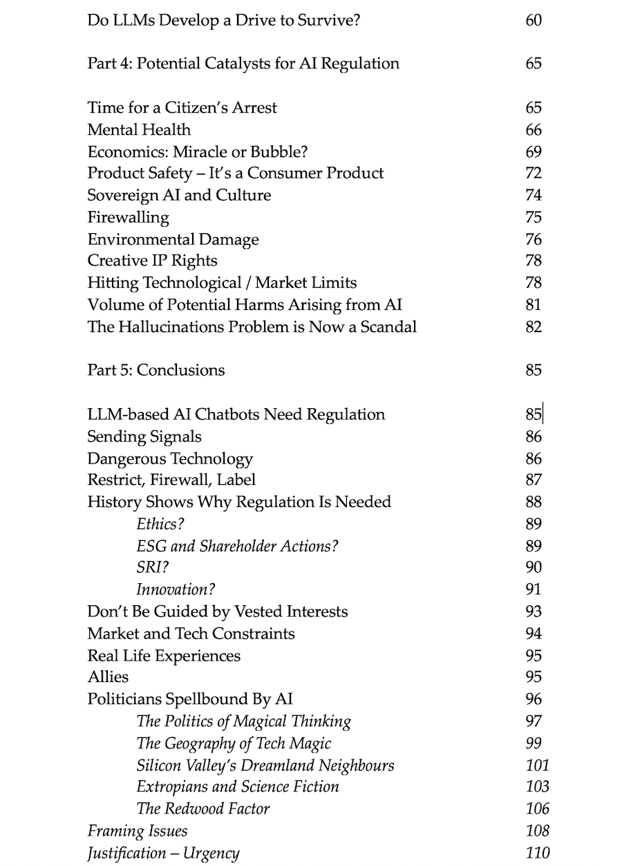 In Part 4 I suggest ten areas which might enable Civil Society to engage the public with tangible real world evidence (not speculation about AGI) and cajole politicians into action. I doubt much will happen to make a difference without that.